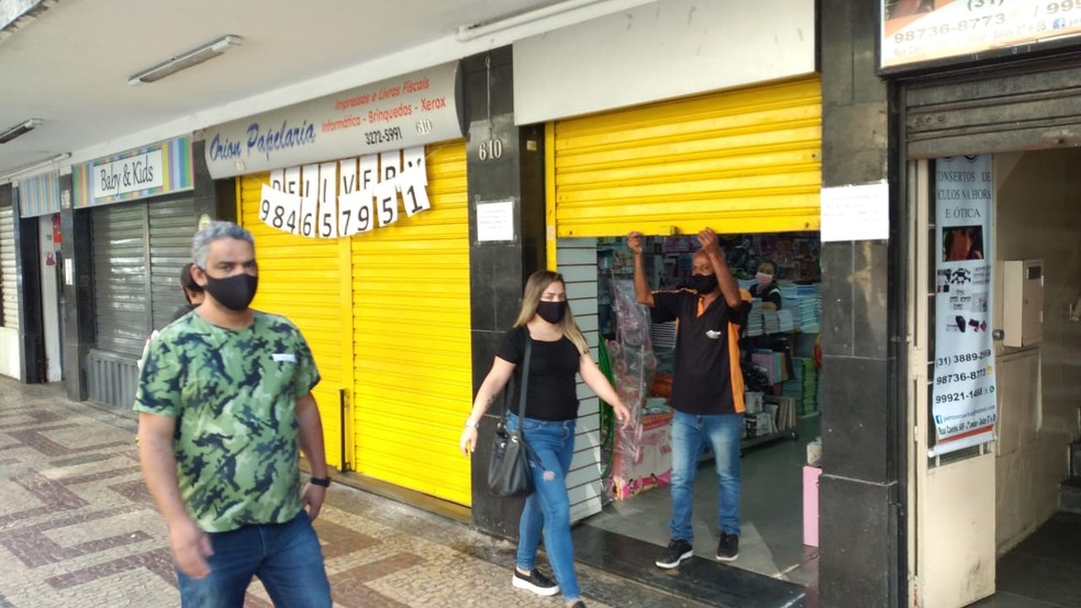 Comércio de BH voltou a funcionar nesta quinta-feira (22) após autorização da prefeitura — Foto: Vladimir Vilaça/TV Globo