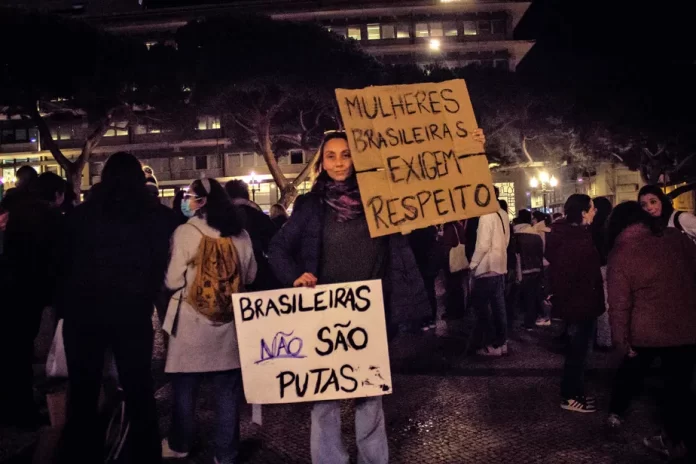Brasileira protesta no Porto durante o último Dia Internacional da Mulher, em 8 de março