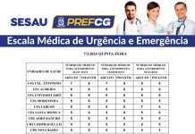 Confira a escala médica de plantão nas UPAs e CRSs nesta segunda-feira,...