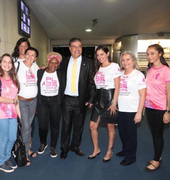 Durante os últimos anos, a Associação de Mulheres Mastectomizadas de Brasília – RECOMEÇAR, ONG associada à FEMAMA no Distrito Federal, vem batalhando por essa legislação. A deputada federal Carmen Zanotto (SC) foi autora do projeto de lei e, em abril deste ano, o senador Nelsinho Trad relatou o projeto à Comissão de Assuntos Sociais (CAS) do Senado que aprovou a proposta. Na época, chegou a ser incluído na ordem do dia para votação do plenário em 16/04, mas em seguida foi retirado. “Nós mantivemos a luta para que esse projeto se tornasse lei, porque aumentam as chances de cura e, novamente, foi incluído para votação no plenário do Senado, aprovado e hoje é lei. Estamos atentos no Senado pela população brasileira”, ressaltou o senador Nelsinho Trad.
