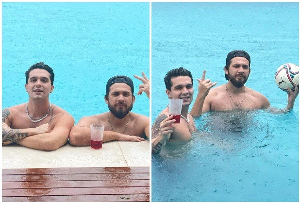 Não existe tempo ruim para os cantores Luan Santana e Gustavo Mioto. Mesmo com chuva os dois pegaram uma piscina neste domingo (30). O momento foi parar nas redes sociais e agitou os fãs de música sertaneja.