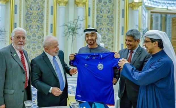 Lula e governador da Bahia presenteiam dono do City Football Group com camisa do Bahia