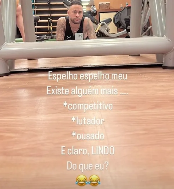 “Espelho, espelho meu… existe alguém mais competitivo, lutador, ousado e, claro, LINDO do que eu?”, escreveu o jogador.