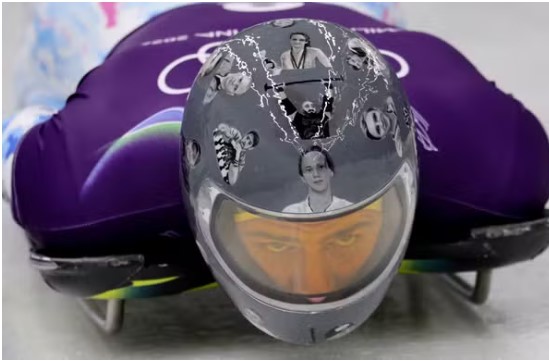 Vladyslav Heraskevych skeleton capacete Guerra Ucrânia — Foto: Athit Perawongmetha/Reuters